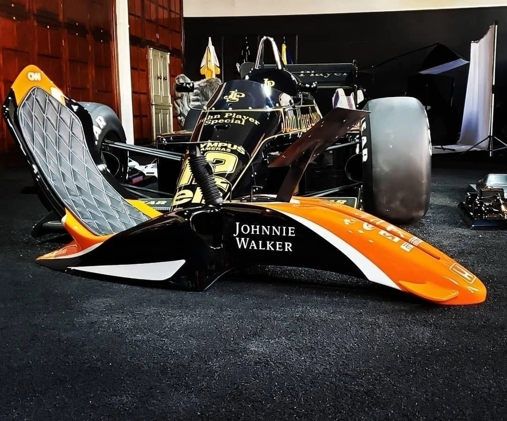 Informações técnicas: Feito em fibra de vidro, pintura automotiva, ferragens na parte interna, com suporte para volante e pedal na parte externa fora. As ferragens têm possibilidade de regulagem conforme a altura do jogador. Não acompanha itens eletrônicos.
